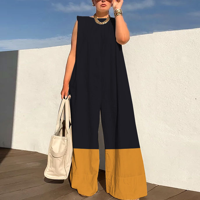 Sleeveless Wide Leg Shoulder Pad Printed Jumpsuits