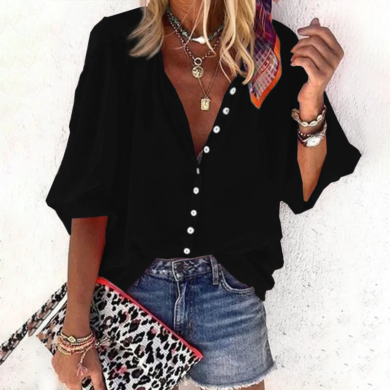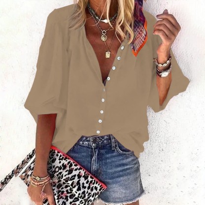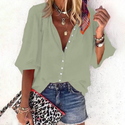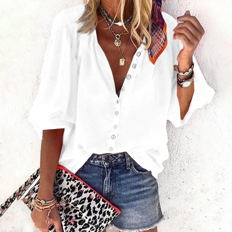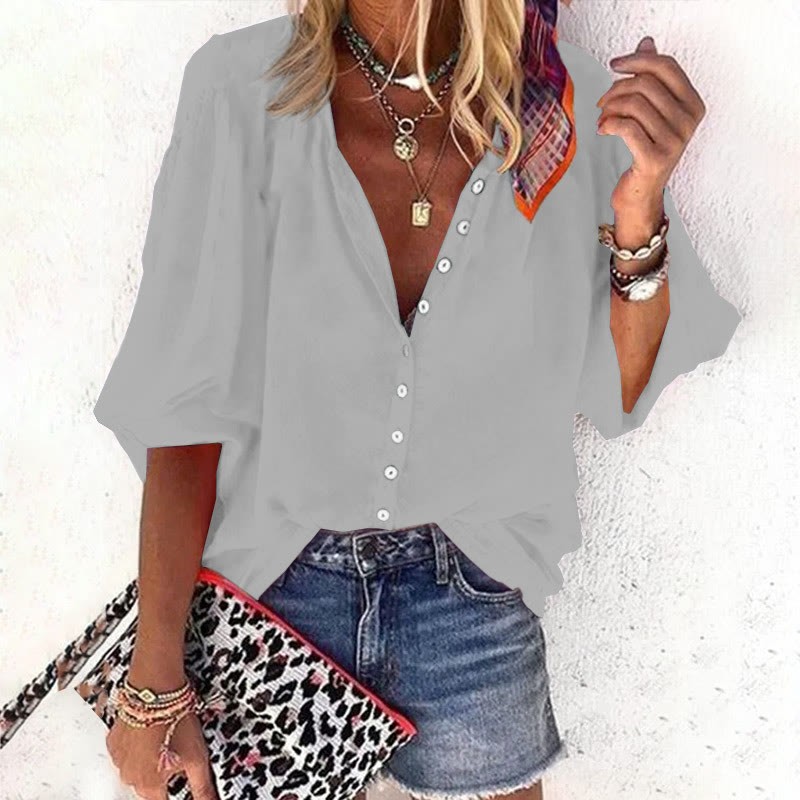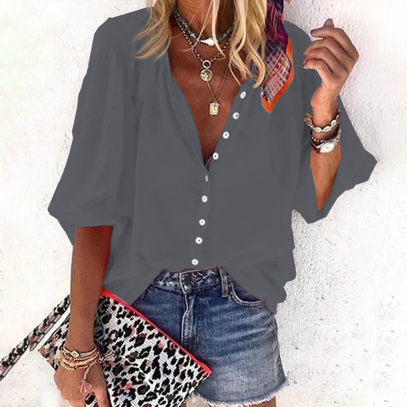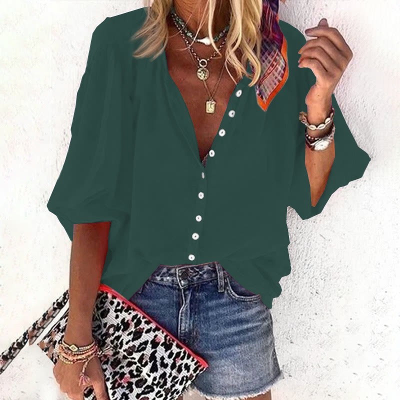 Dashingsoul Casual Solid Color Women's 3/4 Sleeve Blouse