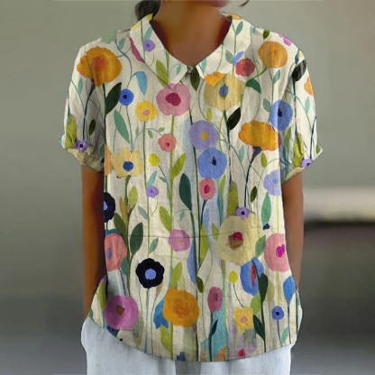 Oil Painting Spring Field Art Printed Women's Casual BLOUSE