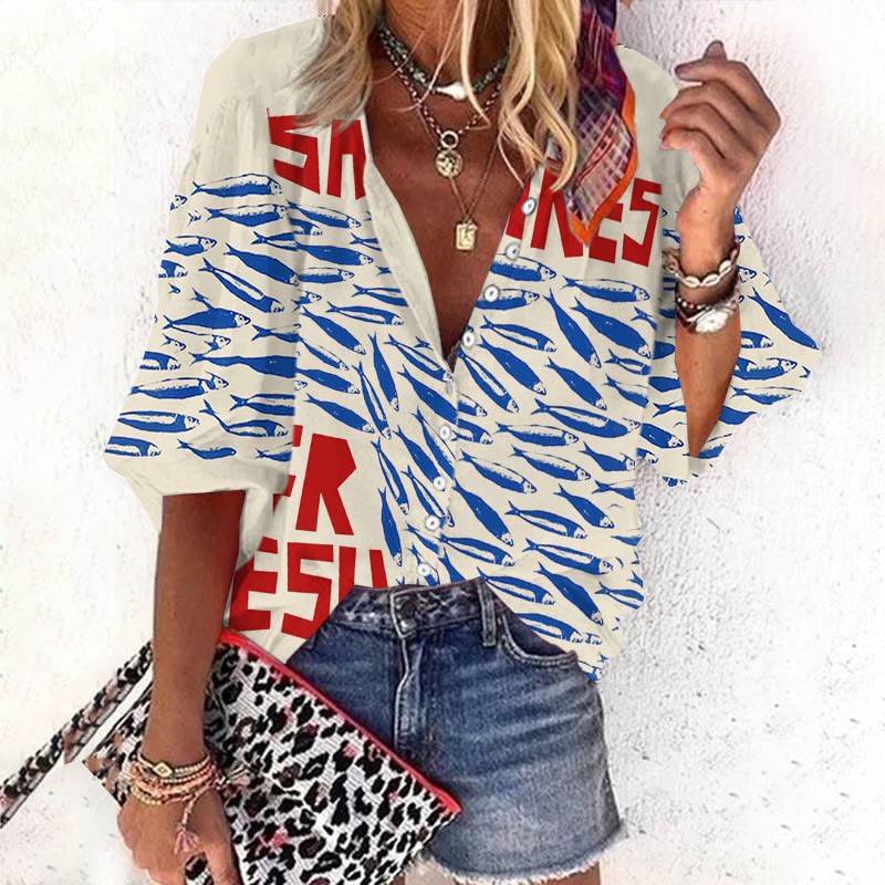 Dashingsoul Women's Casual Fresh Sardines Art Print Casual 3/4 Sleeve Blouse