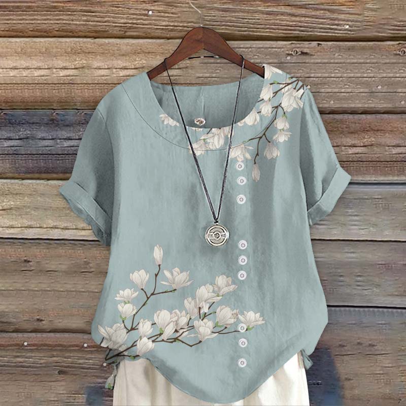 Dashingsoul Vintage Floral Art Print Short Sleeve Blouse