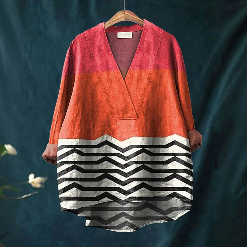 Dashingsoul Irregular Geometric Art Printed Casual V-neck Shirt