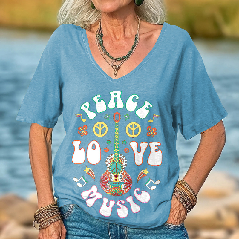 Product NamePeace Love Music Printed V-Neck Women's T-shirt