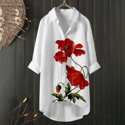 Dashingsoul Women's Poppy Flower Floral Print Casual Shirt