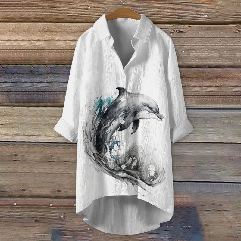Dashingsoul Artistic Ink Painting Dolphin Print Casual Shirt