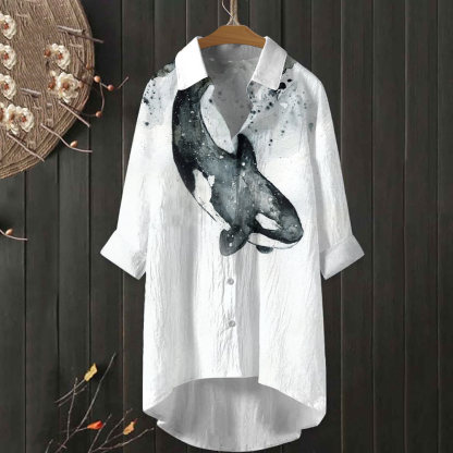 Dashingsoul Watercolor Killer Whale Print Casual Shirt