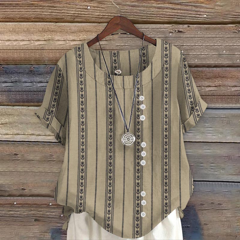 Dashingsoul Women's Vintage Tulip Stripe Print Short Sleeve Blouse