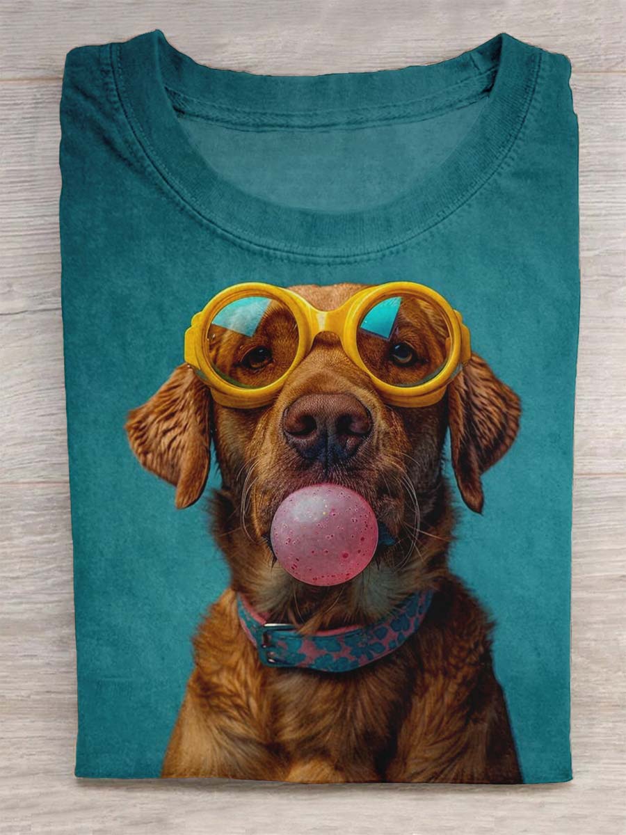 Quirky Dog with Goggles and Bubblegum Art Print Design T-shirt