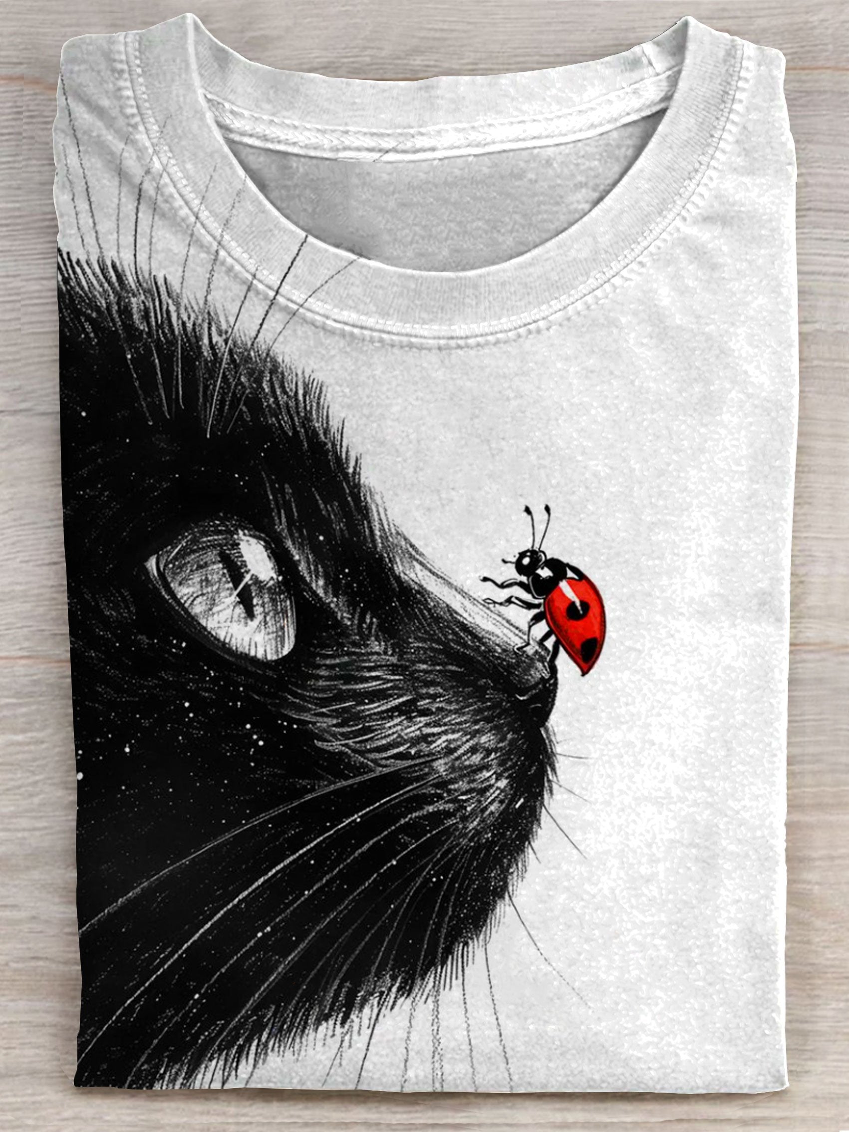 Funny Cat Art Print Casual Short Sleeve T-shirt