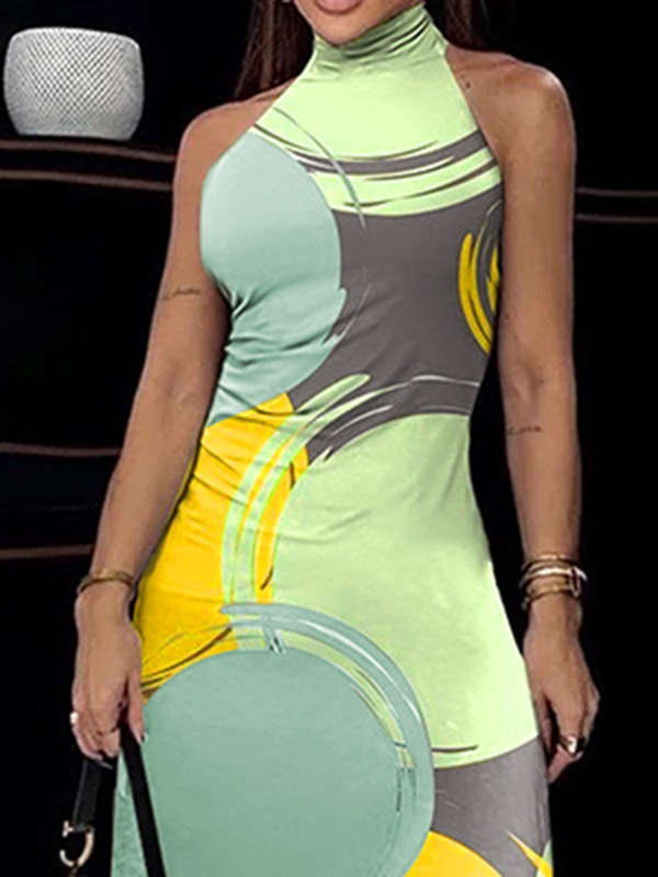 Skinny Sleeveless Printed High Neck Maxi Dresses