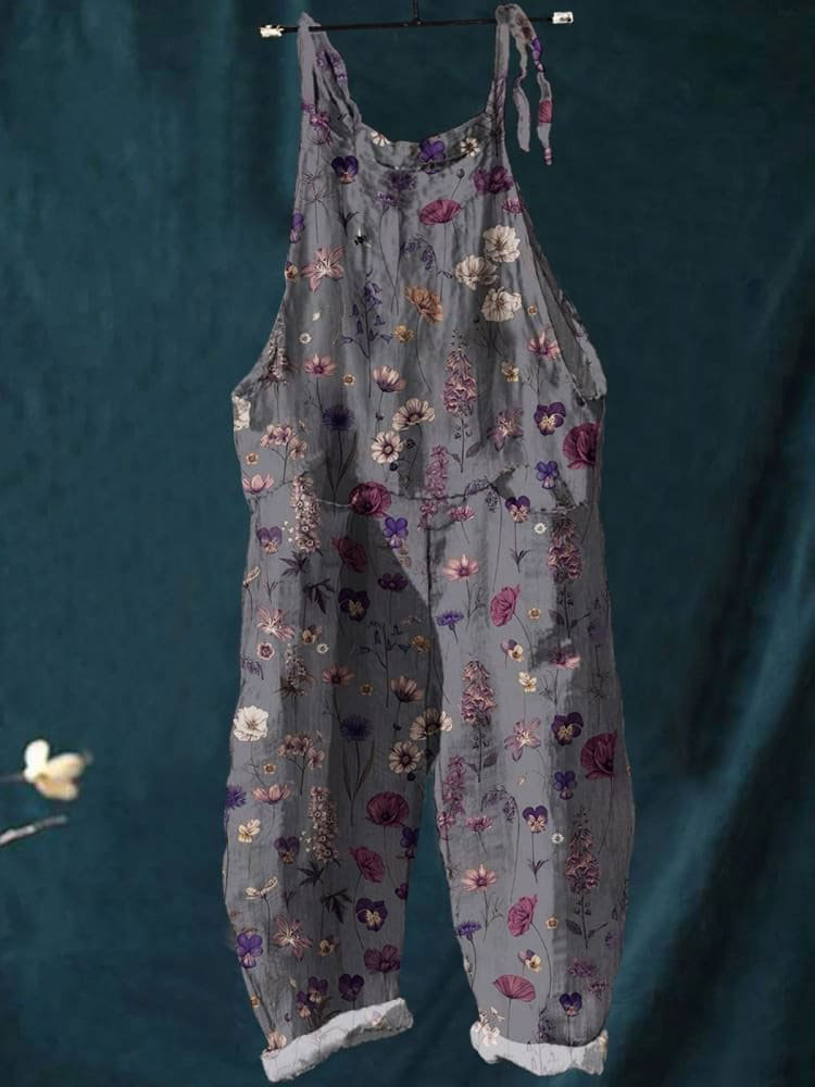 Women's Vintage Floral Art Pattern Printed Cotton And Linen Casual Pants