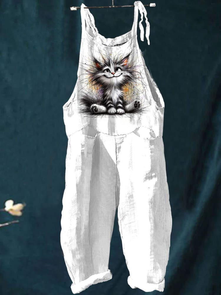Women's Vintage Abstract Art Printed Cotton And Linen Casual Pants