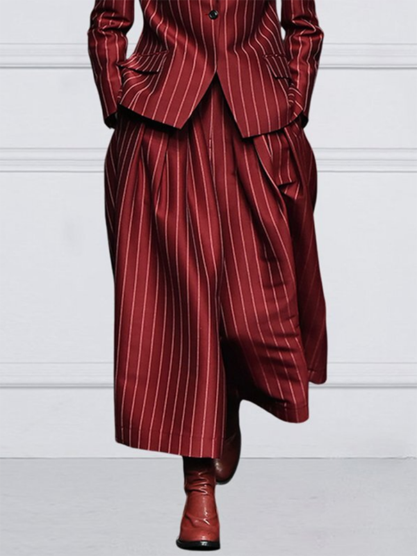 High Waisted Loose Split-Joint Striped Pants Suit Pants Trousers