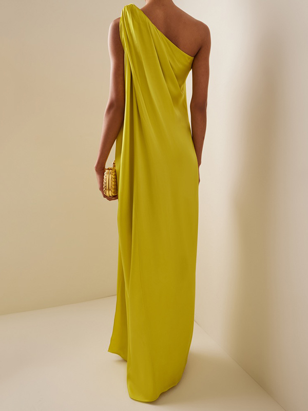 Loose Sleeveless Solid Color One-shoulder Maxi Dresses