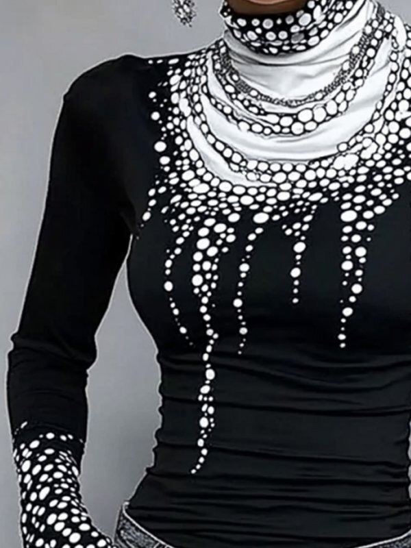 Long Sleeves Skinny Printed High-Neck T-Shirts Tops