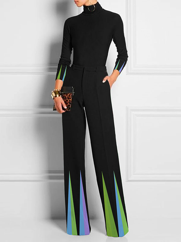 Long Sleeves Skinny Printed Split-Joint High Neck T-Shirts Tops