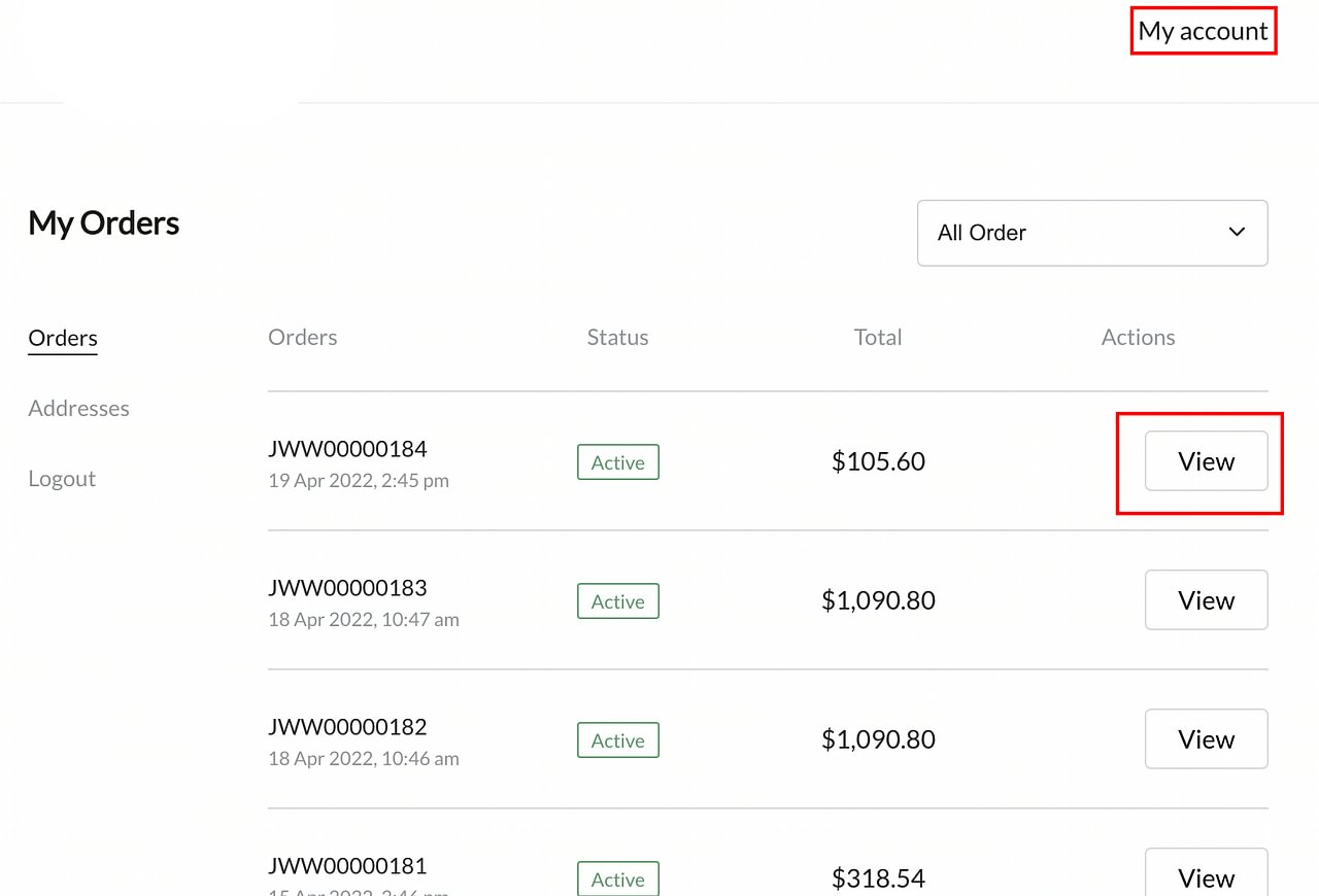 First of all, it is recommended that you register an account in LOLONB, then click "Account" in the upper right corner of the website.Then log into your account to view your recent order history, or you can click "View Your Order" on a notification email we sent you, it can easily jump to the corresponding order details page to view the corresponding information.