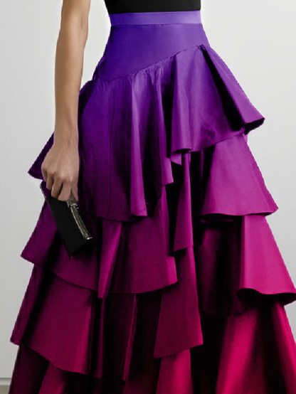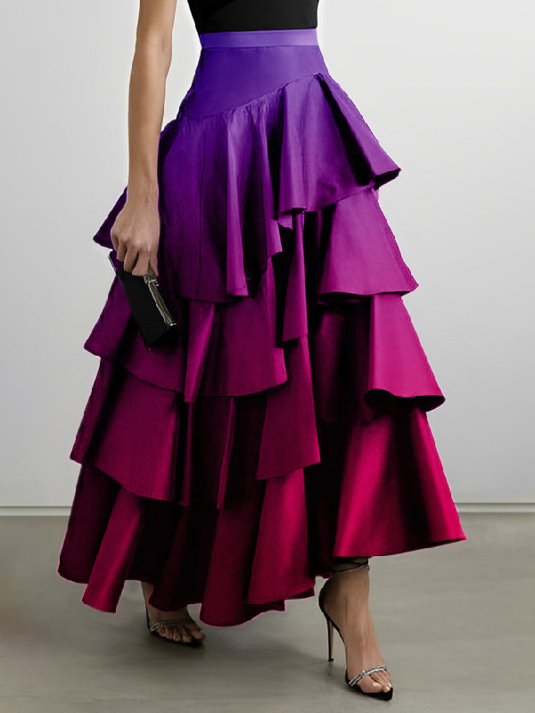 A-Line High Waisted Falbala Gradient Skirts Bottoms