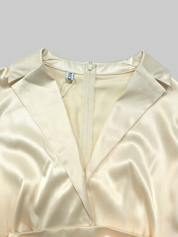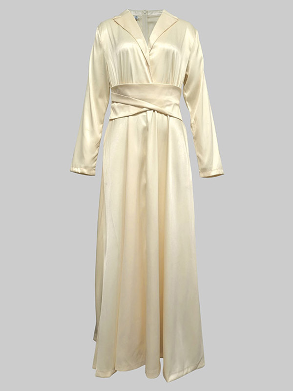 A-Line High Waisted Pleated Solid Color V-Neck Maxi Dresses