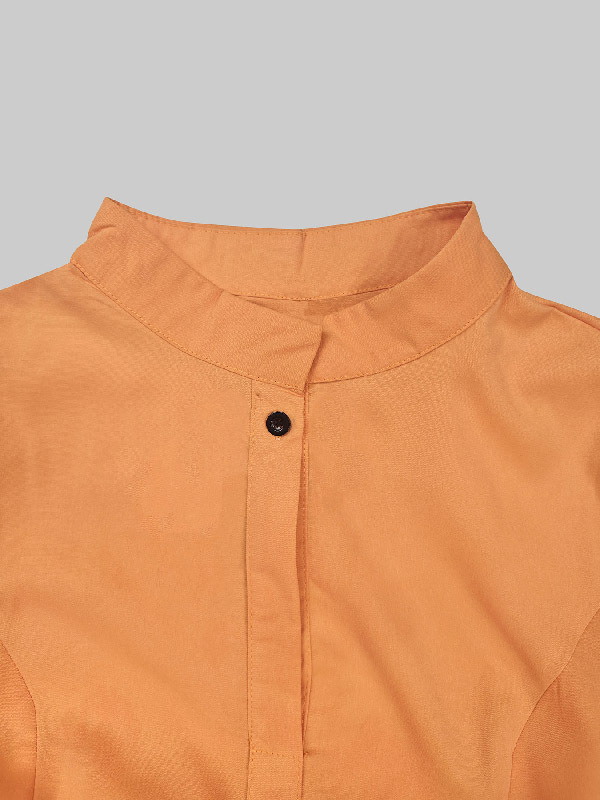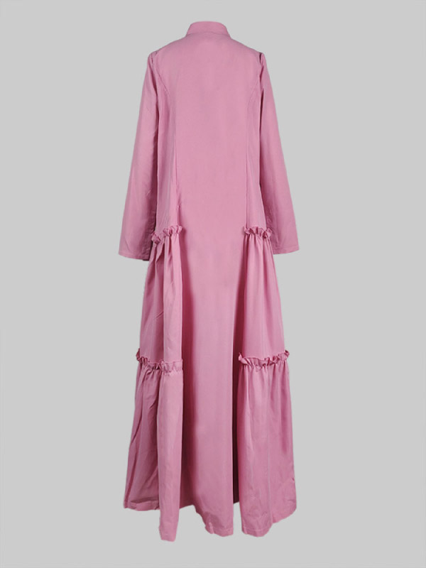 A-Line Long Sleeves Buttoned Layered Pleated Pockets Ruffled Solid Color Split-Joint Stand Collar Maxi Dresses