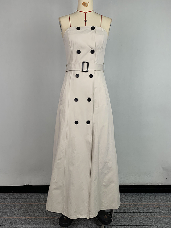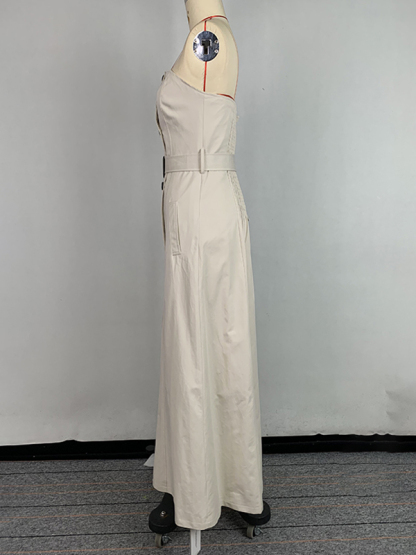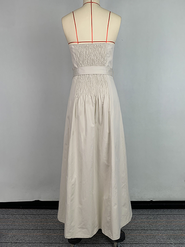 A-Line Loose Belted Buttoned Pockets Tube Maxi Dresses