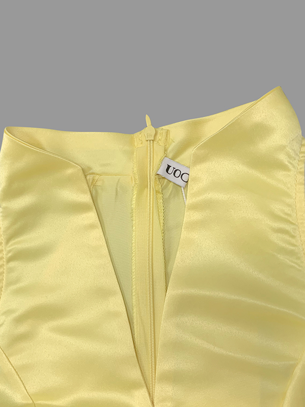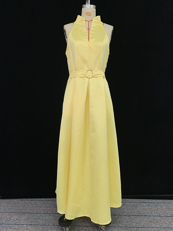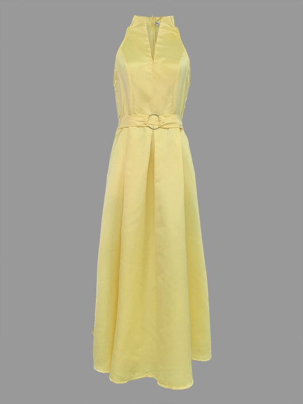 A-Line Loose Belted Pleated Pockets Solid Color V-Neck Midi Dresses