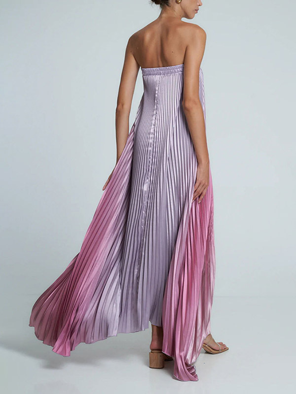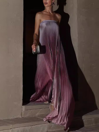 A-Line Loose Elasticity Gradient Pleated Tube Evening Dresses Maxi Dresses