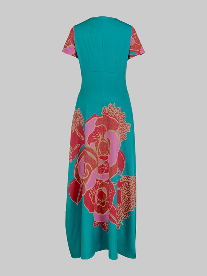 A-Line Loose Floral Printed Split-Joint Deep V-Neck Evening Dresses Maxi Dresses