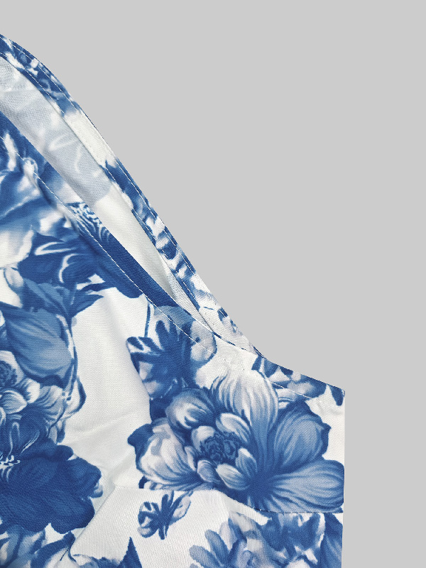 A-Line Loose Flower Print Split-Joint Lapel Maxi Dresses