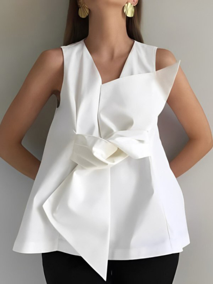 A-Line Loose Knot Solid Color V-Neck Vest Top