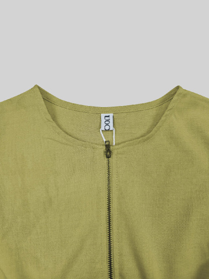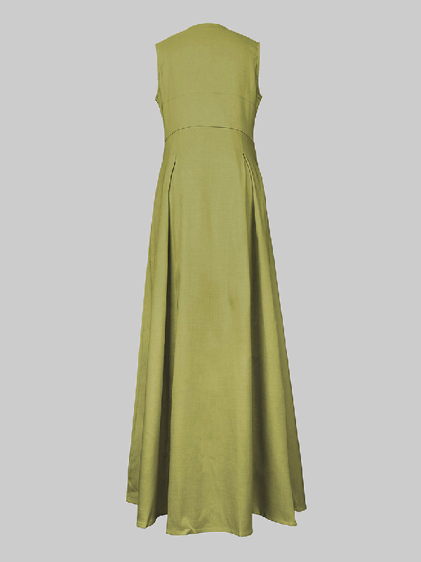 A-Line Loose Pleated Pockets Split-Joint Zipper Round-Neck Maxi Dresses