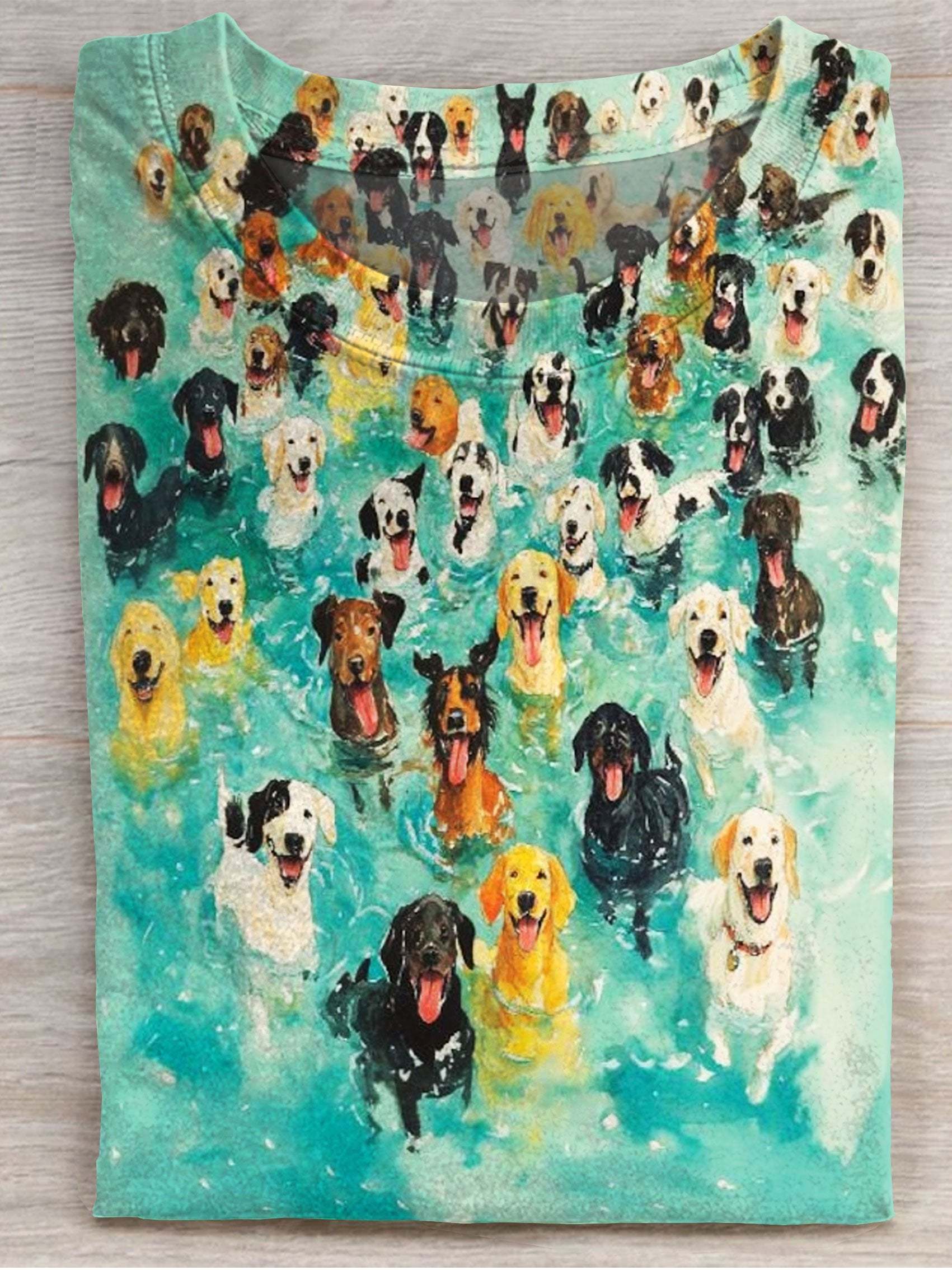 All Dogs Go to Lakes Watercolor Art Print Casual Short Sleeve T-shirt
