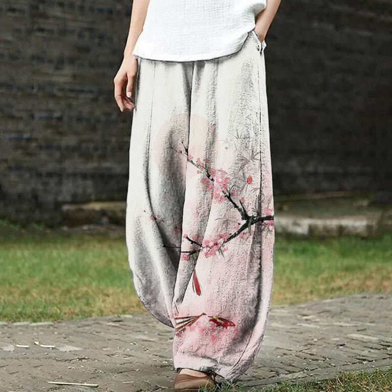 Dashingsoul Ancient Cherry Blossom Print Japanese Style Casual Pants