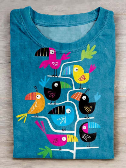 Bird Art Print Casual Short Sleeve T-Shirt