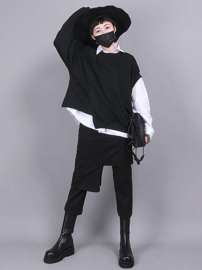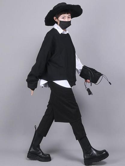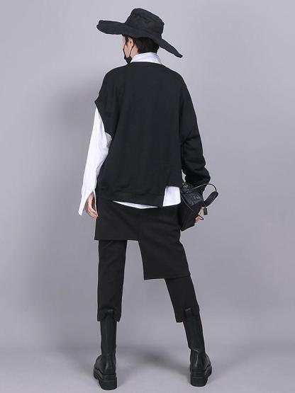 Black Empire False Two Asymmetric 9 Points Culottes Pants