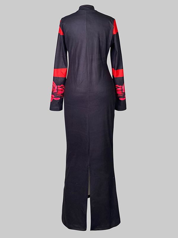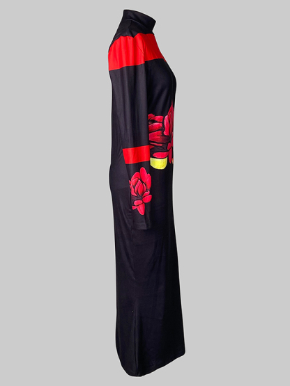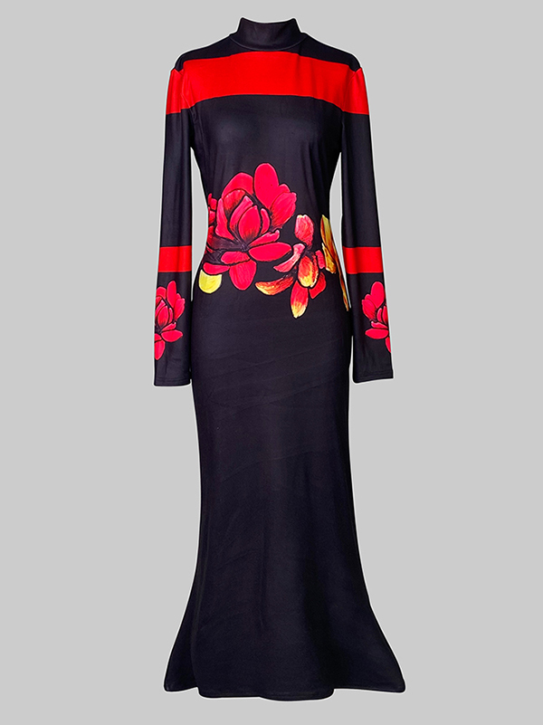 Bodycon Long Sleeves Flower Print High Neck Midi Dresses
