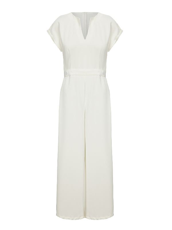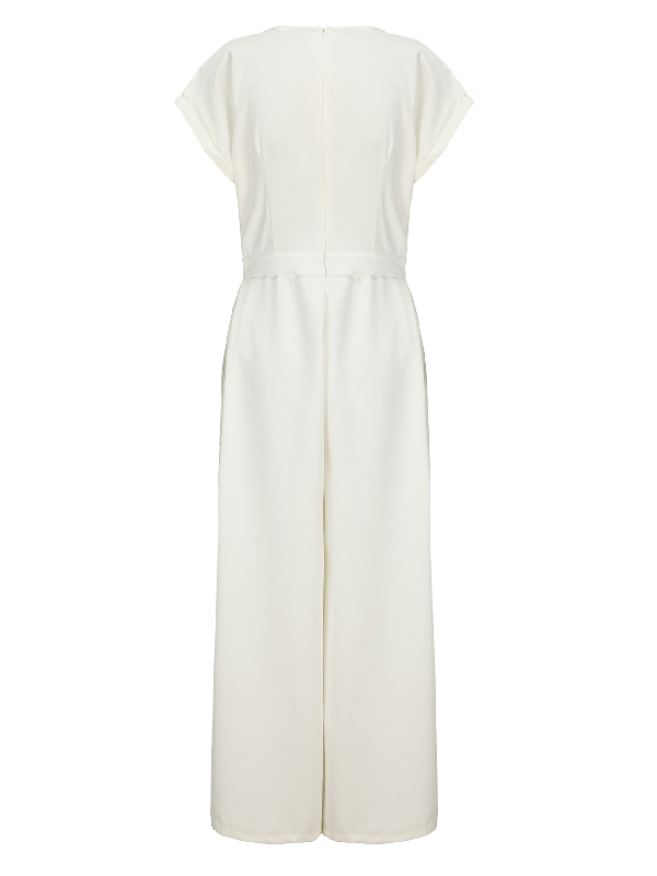 Cap Sleeve Wide Leg Solid Color Jumpsuits