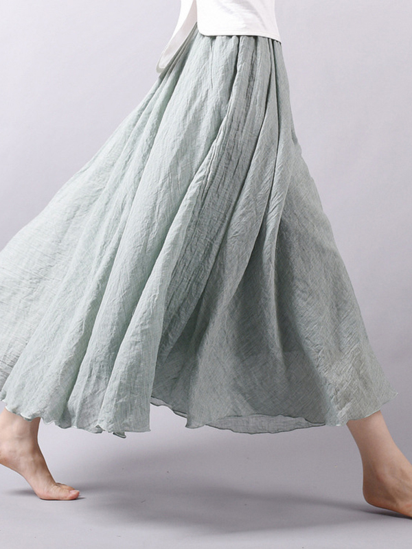 Casual A-Line Elastic Waist Solid Color Skirts