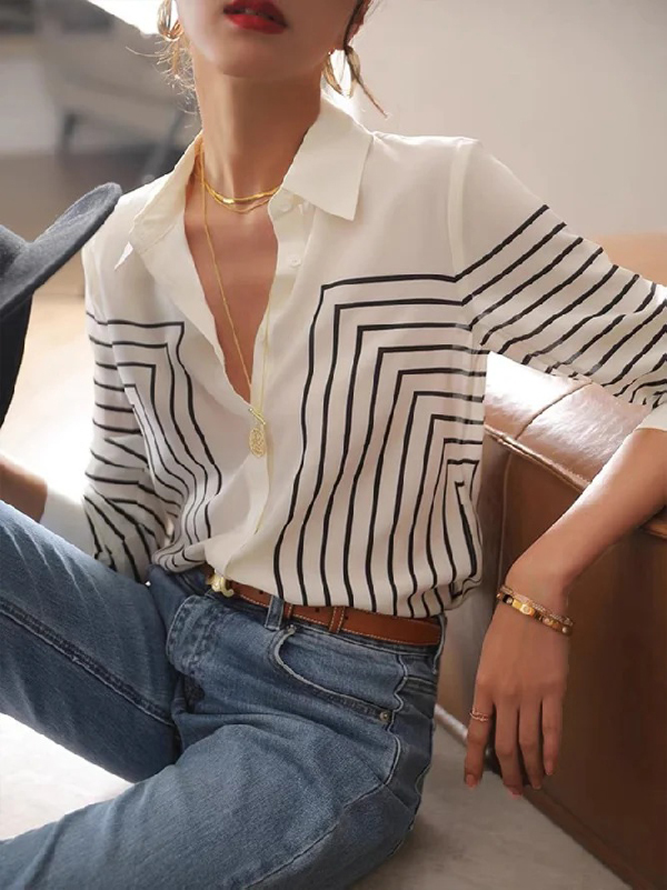 Casual Long Sleeves Printed Lapel Blouses&Shirts Tops