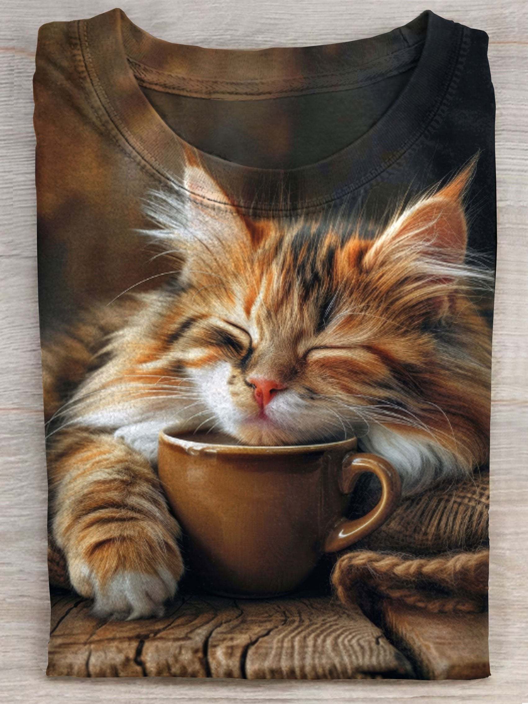 Coffee Cat Art Print Casual Short Sleeve T-shirt
