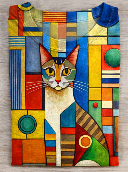 Colorful Abstrct Cat Art Print Casual Short Sleeve T-shirt