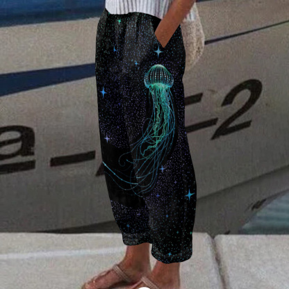 Colorful Starry Sky Jellyfish Print Casual Pocket Pants