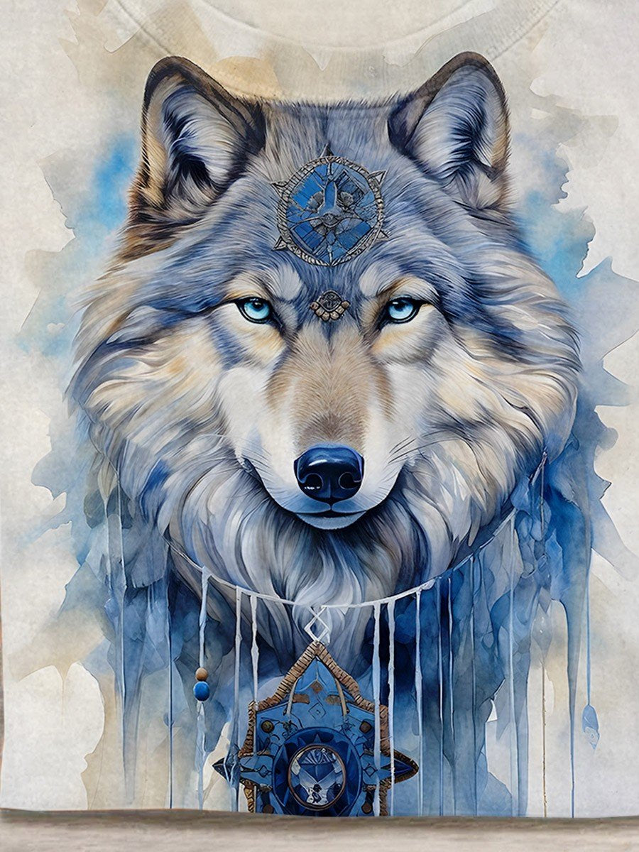 Cool Watercolor Wolf Art Print Casual T-Shirt