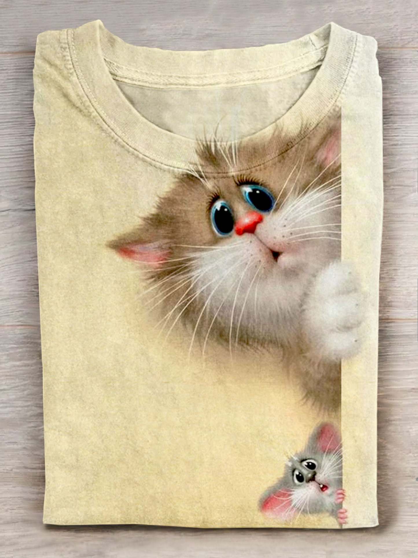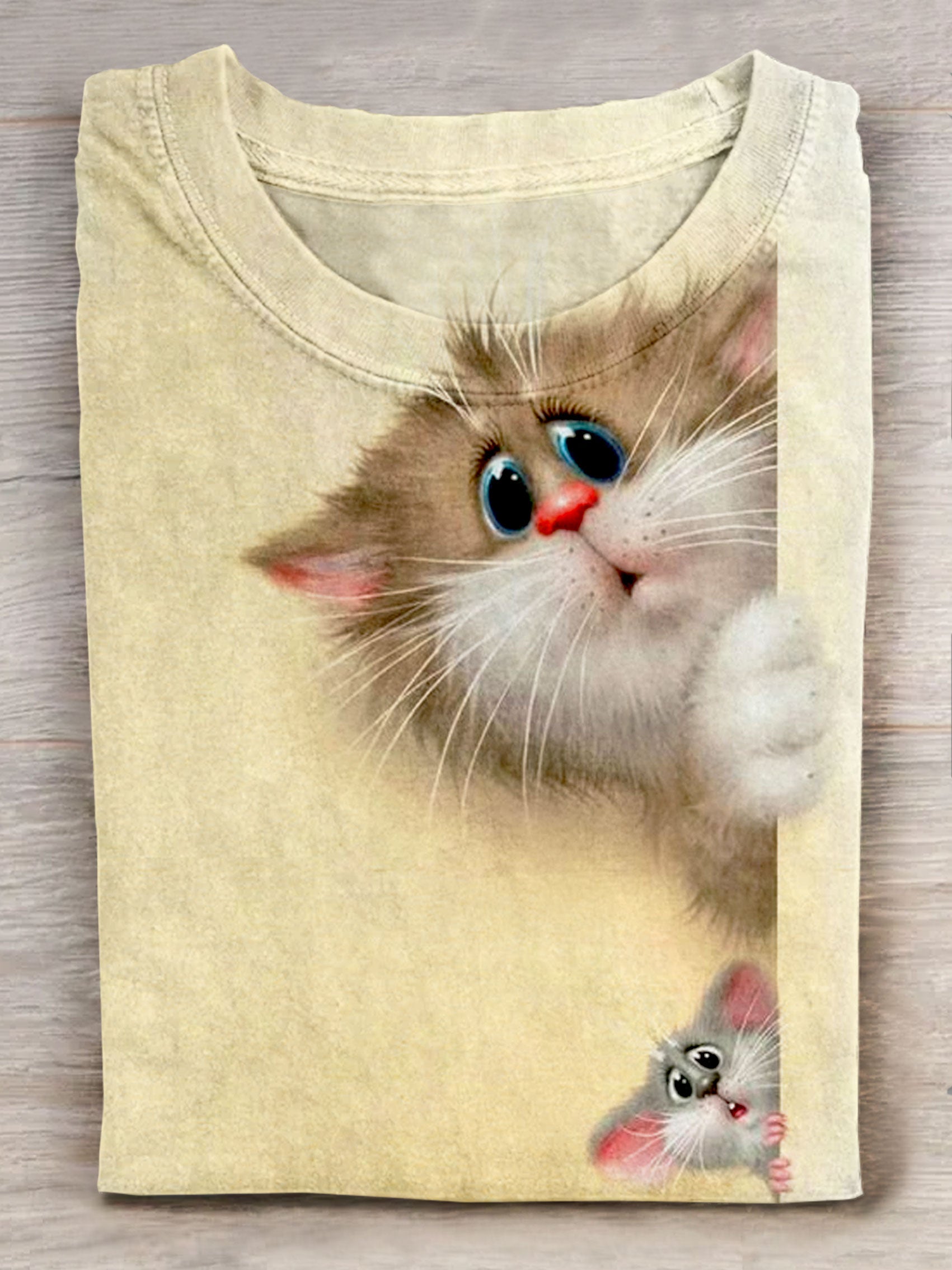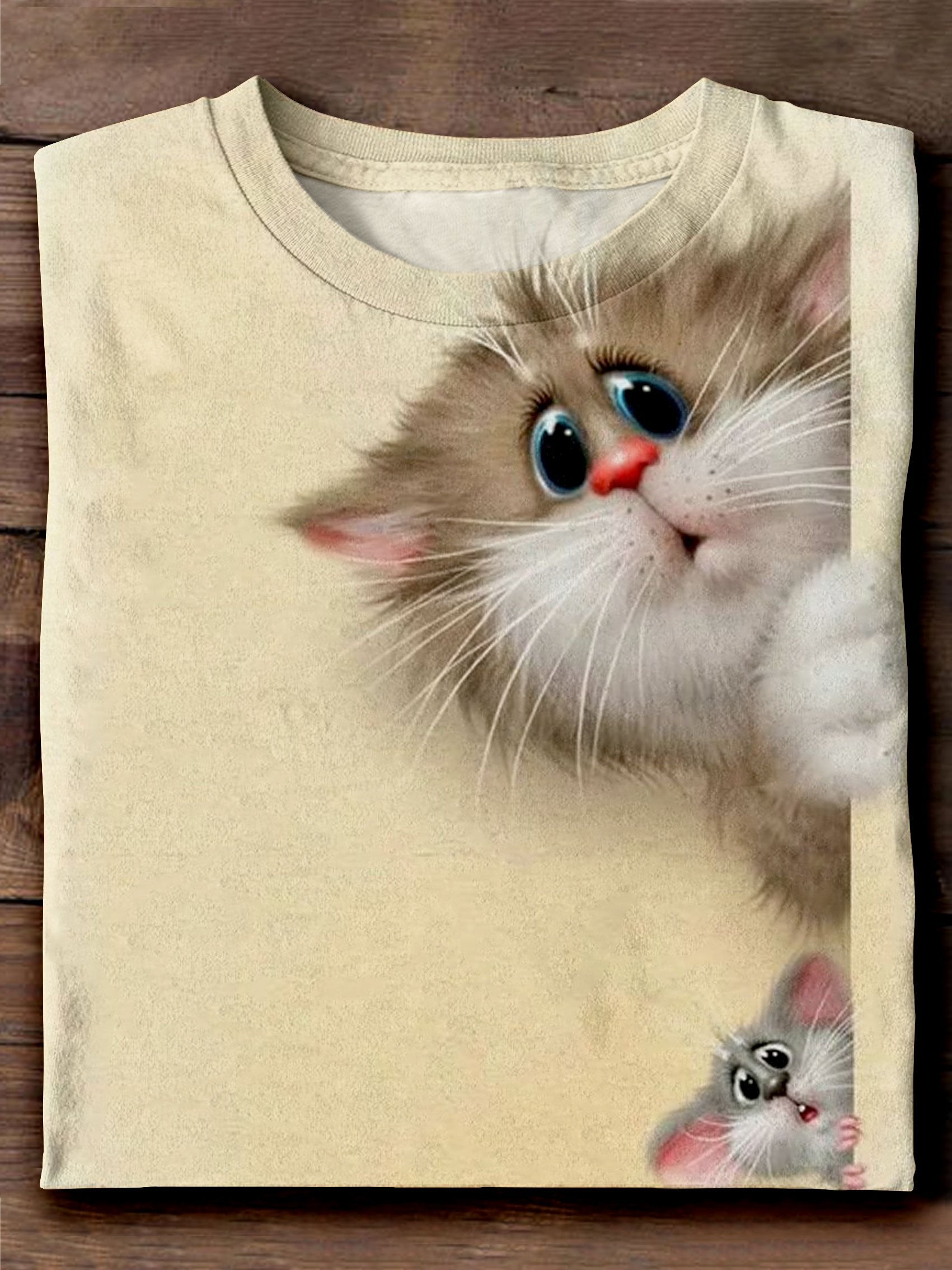 Cute Cat Mouse Art Print Casual Short Sleeve T-shirt