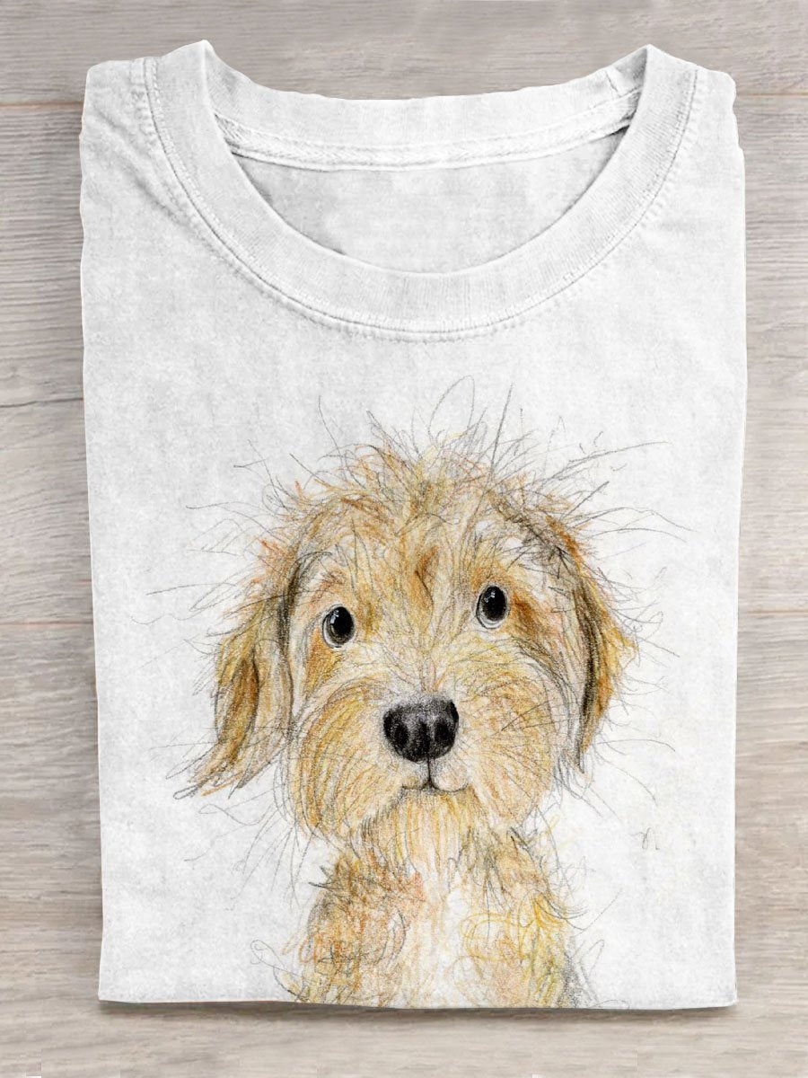 Cute Funny Dog Portrait Art Print Casual T-shirt