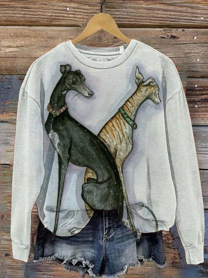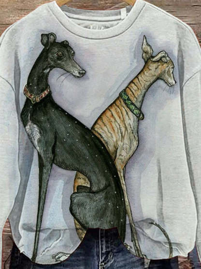 Dog Greyhound Art Casual Print Sweatshirt
