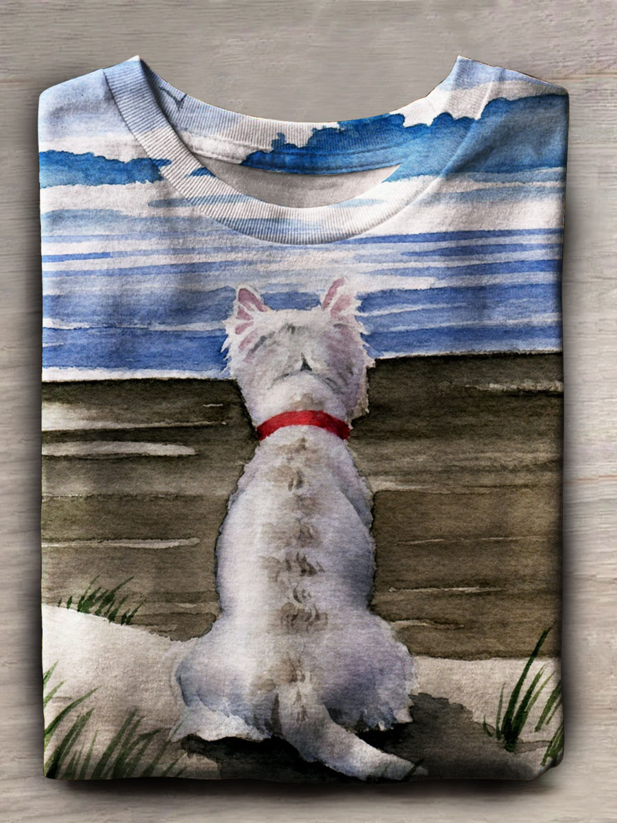 Dog Print Casual Short Sleeve Top