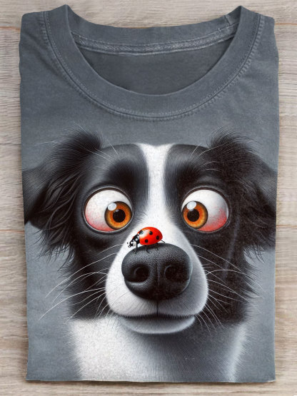 Dog With Ladybug Art Print Casual Short Sleeve T-shirt