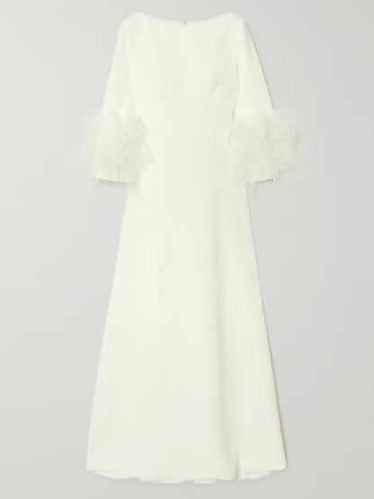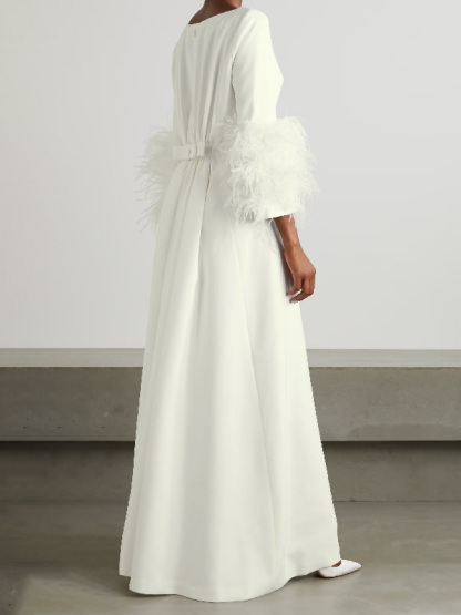 Elegant Simple Black And White Feather Long Sleeve Party Dress