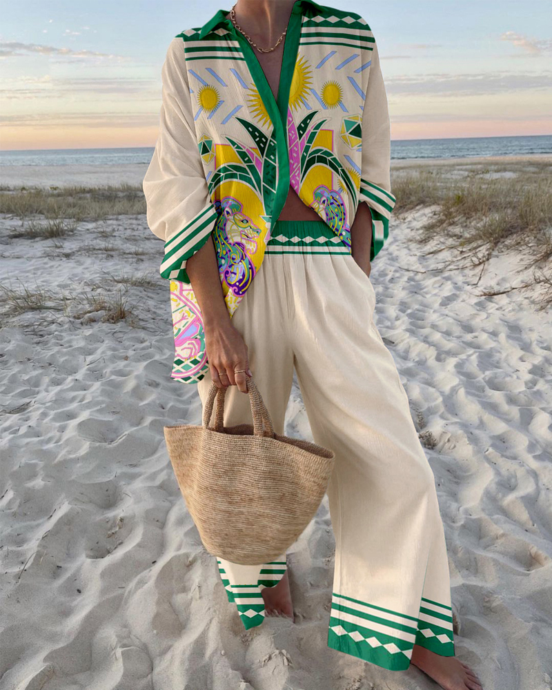 Fashion Lion Print Shirt & Pants Two-piece Set